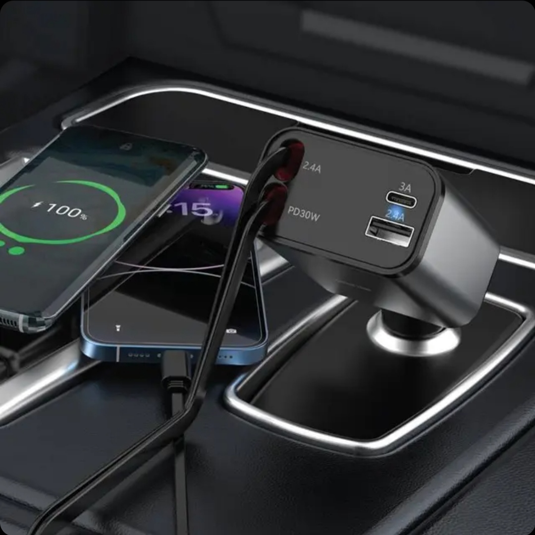 اگر آیفون، آیپد یا ایرپاد دارید، دیگر نیازی به کابل جداگانه ندارید. کابل Lightning داخلی با خروجی 5V/2.4A شارژی مطمئن و سریع ارائه میدهد، بدون اینکه فضای کنسول خودرو را شلوغ کند.